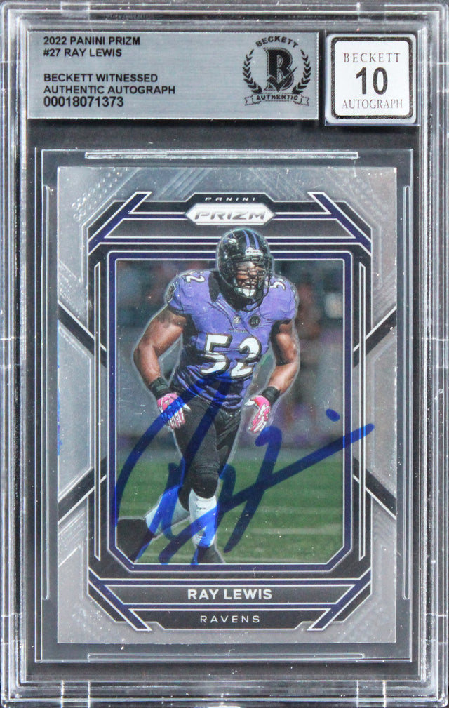 Ravens Ray Lewis Signed 2022 Panini Prizm #27 Card Auto Graded 10! BAS Slabbed