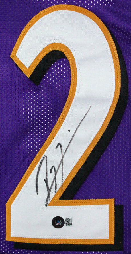 Ray Lewis Autographed Purple Pro Style Jersey w/HOF - Beckett W Auth *2