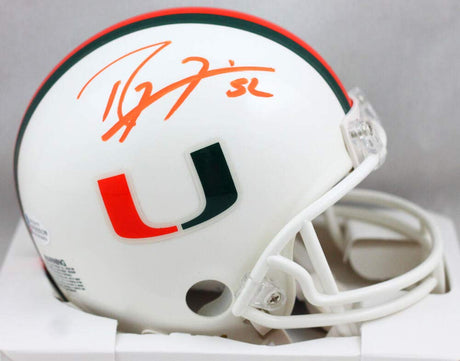 Ray Lewis Autographed Miami Hurricanes Orange Schutt Mini Helmet- Beckett W Holo