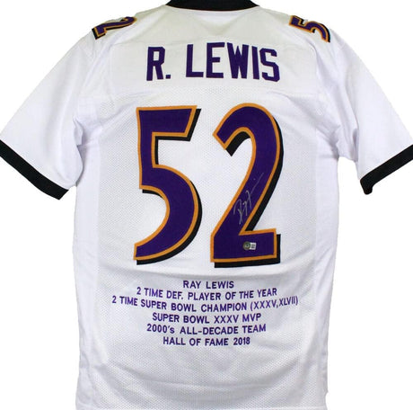 Ray Lewis Autographed White Pro Style STAT Jersey-Beckett W Hologram *Silver