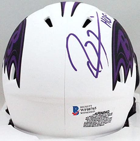 Ray Lewis Autographed Ravens F/S Eclipse Helmet w/ HOF- Beckett Witness *Purple