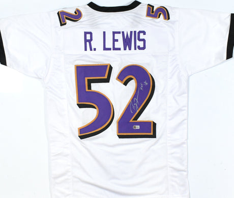Ravens Ray Lewis Authentic Signed White Mitchell & Ness Jersey BAS Witnessed