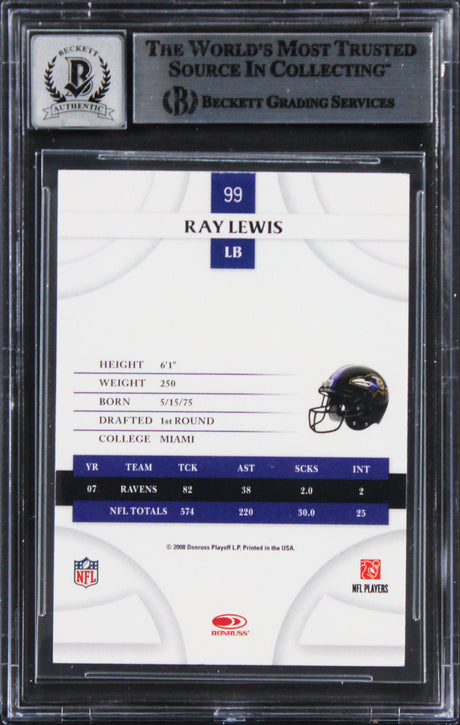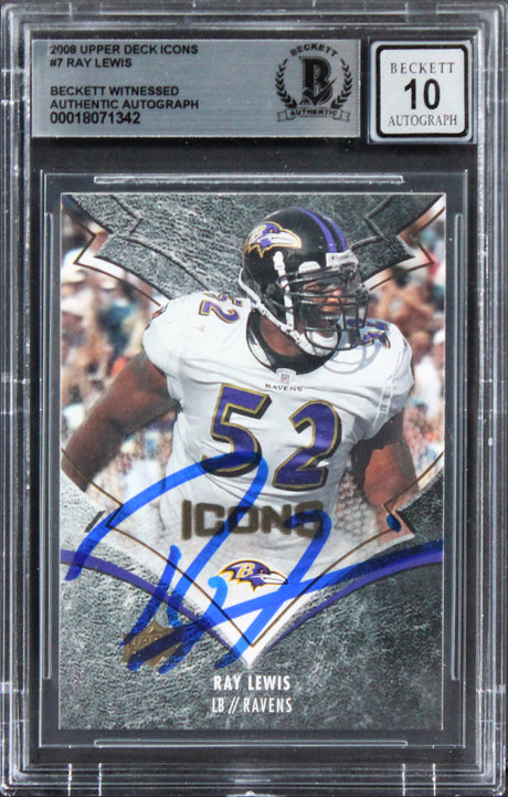 Ravens Ray Lewis Signed 2008 Upper Deck Icons #7 Card Auto Mint 10! BAS Slabbed