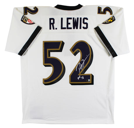 Ray Lewis Autographed White Pro Style Jersey w/HOF - Beckett W Hologram *Silver