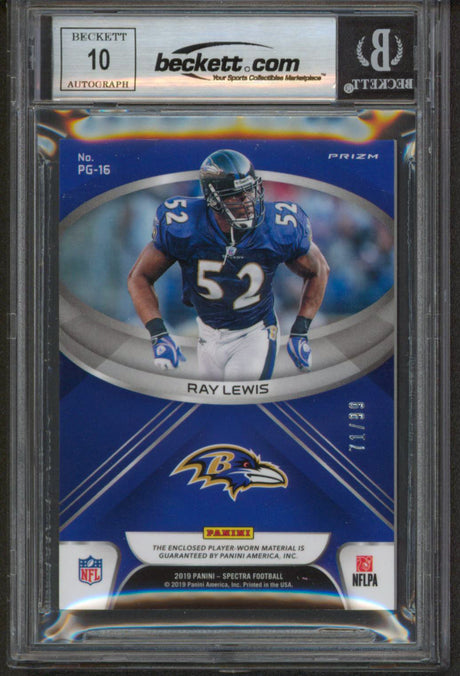 Ray Lewis Signed 2019 Spectra POTG Neon Blue #16 71/99 Card Auto 10! BAS Slabbed