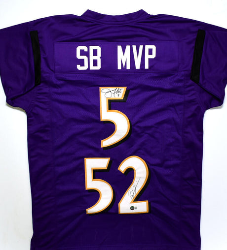 Ray Lewis Joe Flacco Autographed Purple Pro Style Jersey-Beckett W Hologram