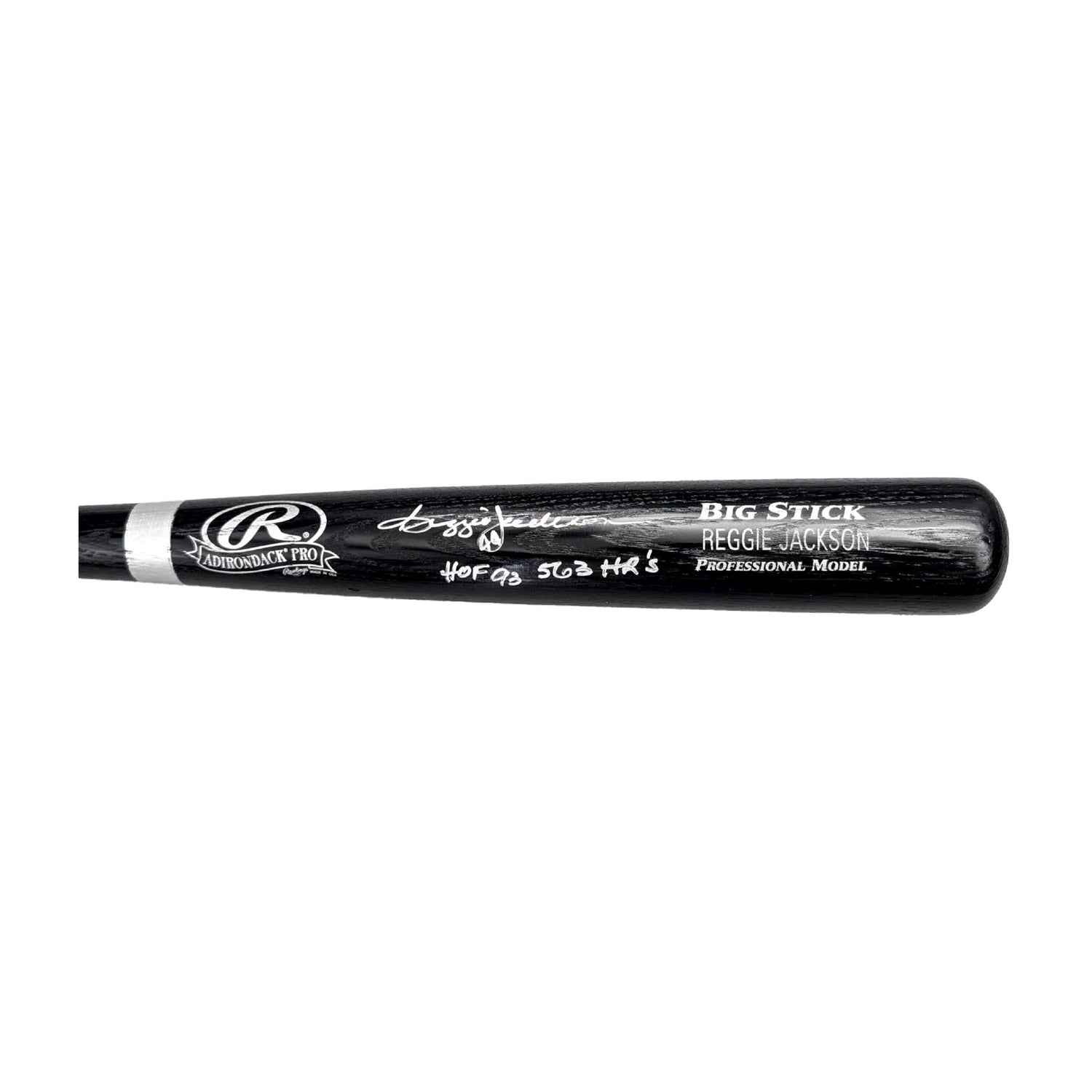 Own a piece of baseball history with this Rawlings Adirondack Pro Big Stick Black Baseball Bat, personally hand signed by Reggie Jackson—the legendary Hall of Famer known as "Mr. October." This collectible bat comes authenticated by PSA/DNA and features two iconic inscriptions: "HOF 98" and "563 HR's", celebrating Jackson's Hall of Fame induction year and career home run total. This signed bat is more than just memorabilia—it's a tribute to one of baseball’s greatest sluggers. Reggie Jackson’s clutch performances, including three consecutive World Series home runs in 1977, have solidified his place in baseball lore. Whether you're a lifelong New York Yankees fan or a serious memorabilia collector, this bat is a defining addition to any collection.