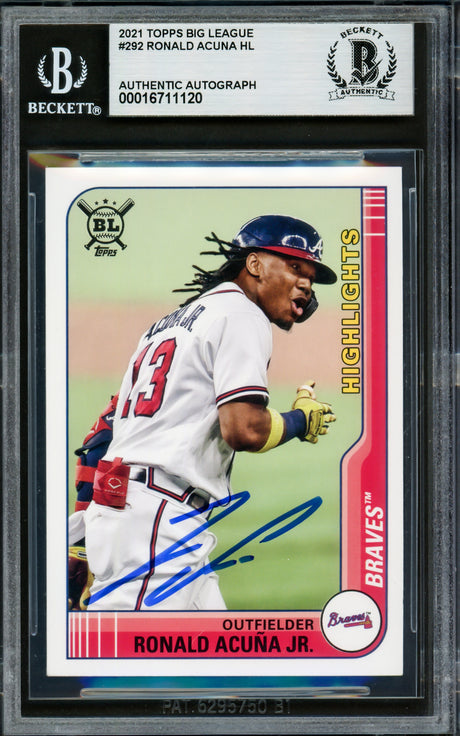 Ronald Acuna Jr. Autographed 2021 Topps Big League Card #292 Atlanta Braves Beckett BAS #16711121