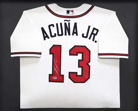 Atlanta Braves Ronald Acuna Jr. Autographed Framed White Nike Jersey Beckett BAS Stock #241399