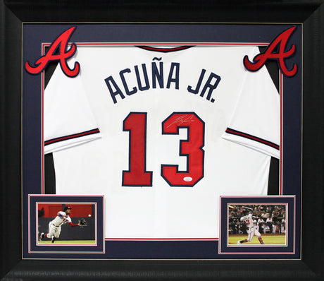Ronald Acuna Jr. Authentic Signed White Pro Style Framed Jersey JSA 2