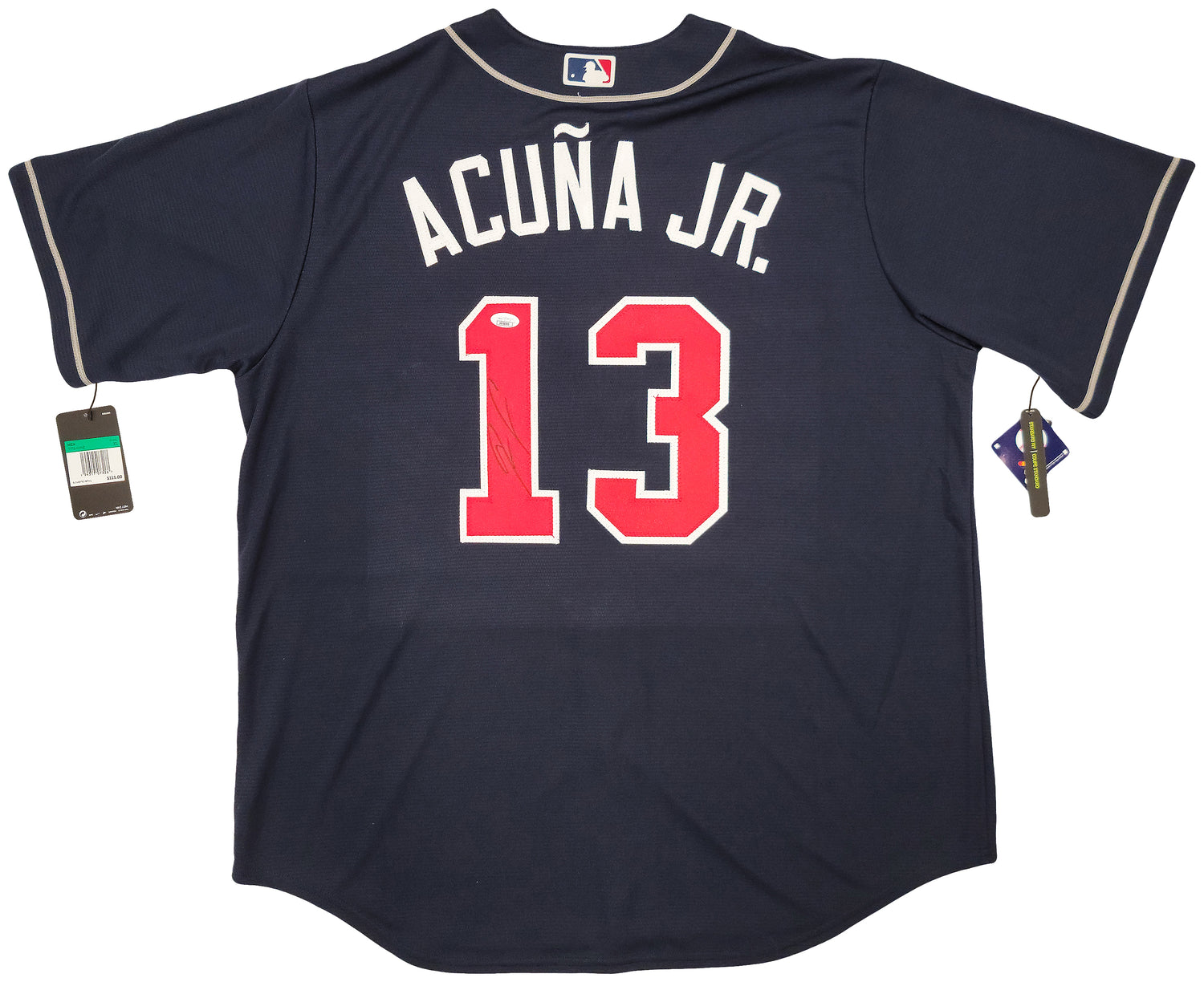 Atlanta Braves Ronald Acuna Jr. Autographed Blue Nike Jersey Size XL JSA Stock #205684 is backordered and will ship as soon as it is back in stock.