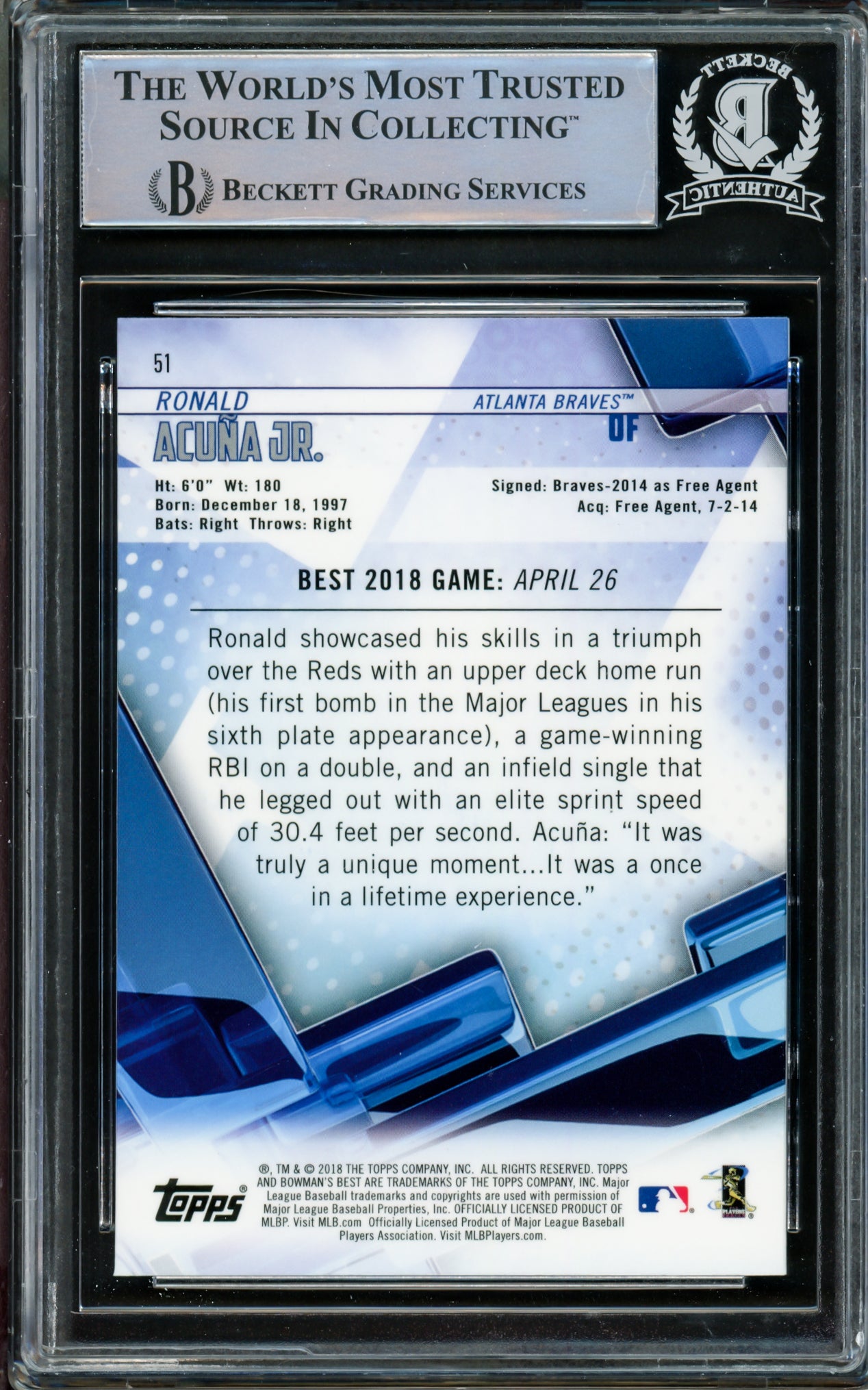 Ronald Acuna Jr. Autographed 2018 Bowman's Best Rookie Card #51 Atlanta Braves Beckett BAS #14612553