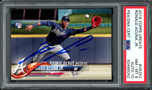Ronald Acuna Jr. Autographed 2018 Topps Update Rookie Card #US252 Atlanta Braves Auto Grade 10 Card Grade NM-MT 8 PSA/DNA #50466042