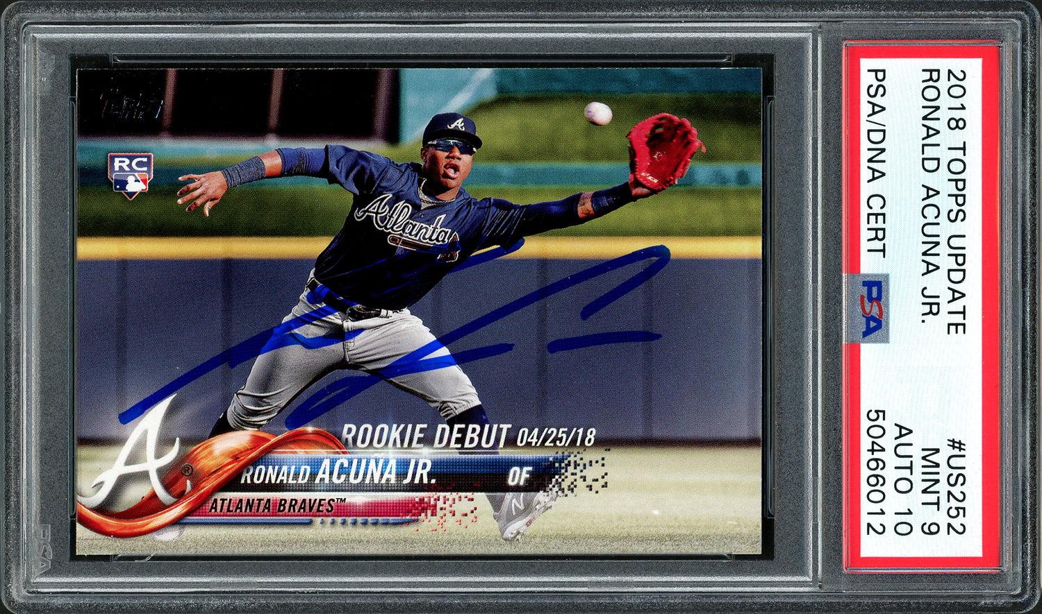 Ronald Acuna Jr. Autographed 2018 Topps Update Rookie Card #US252 Atlanta Braves PSA 9 Auto Grade Gem Mint 10 PSA/DNA #50466012