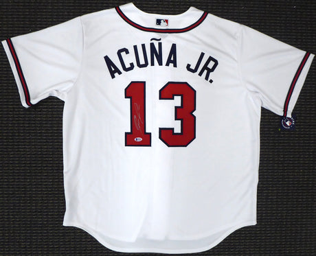 Atlanta Braves Ronald Acuna Jr. Autographed Nike White Jersey Size XL Beckett BAS Stock #181845