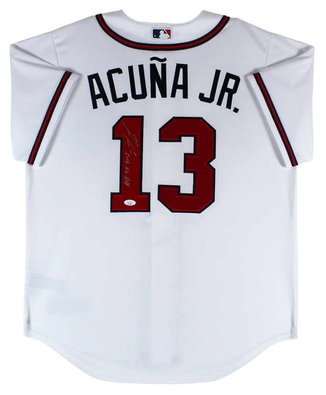 Braves Ronald Acuna Jr. "2018 NL ROY" Signed White Nike Jersey Autographed JSA