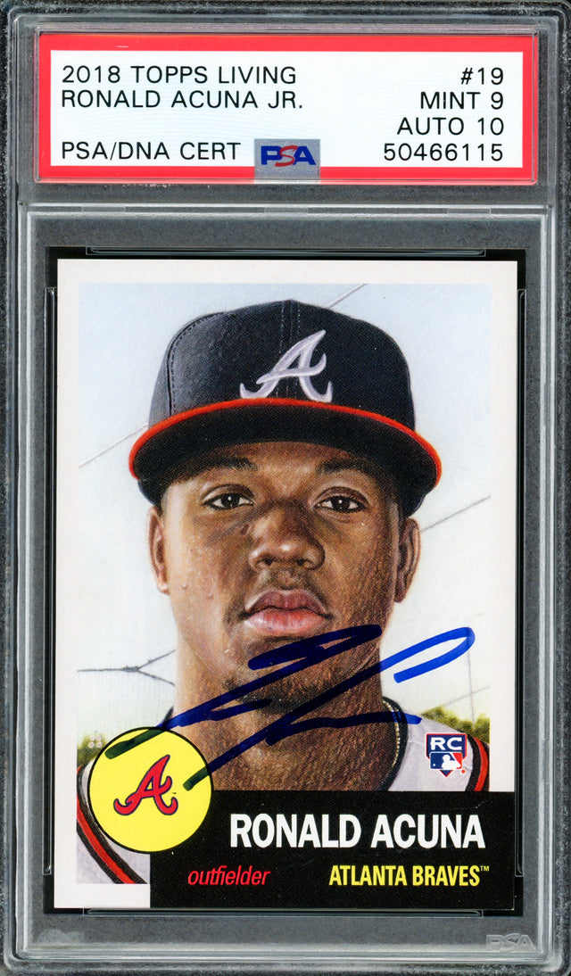Ronald Acuna Jr. Autographed 2018 Topps Living Rookie Card #19 Atlanta Braves PSA 9 Auto Grade Gem Mint 10 PSA/DNA #50466115