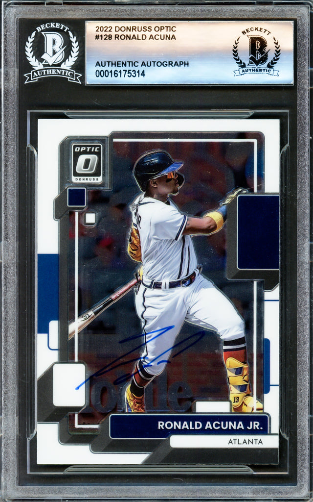 Ronald Acuna Jr. Autographed 2022 Donruss Optic Card #128 Atlanta Braves Beckett BAS Stock #221171