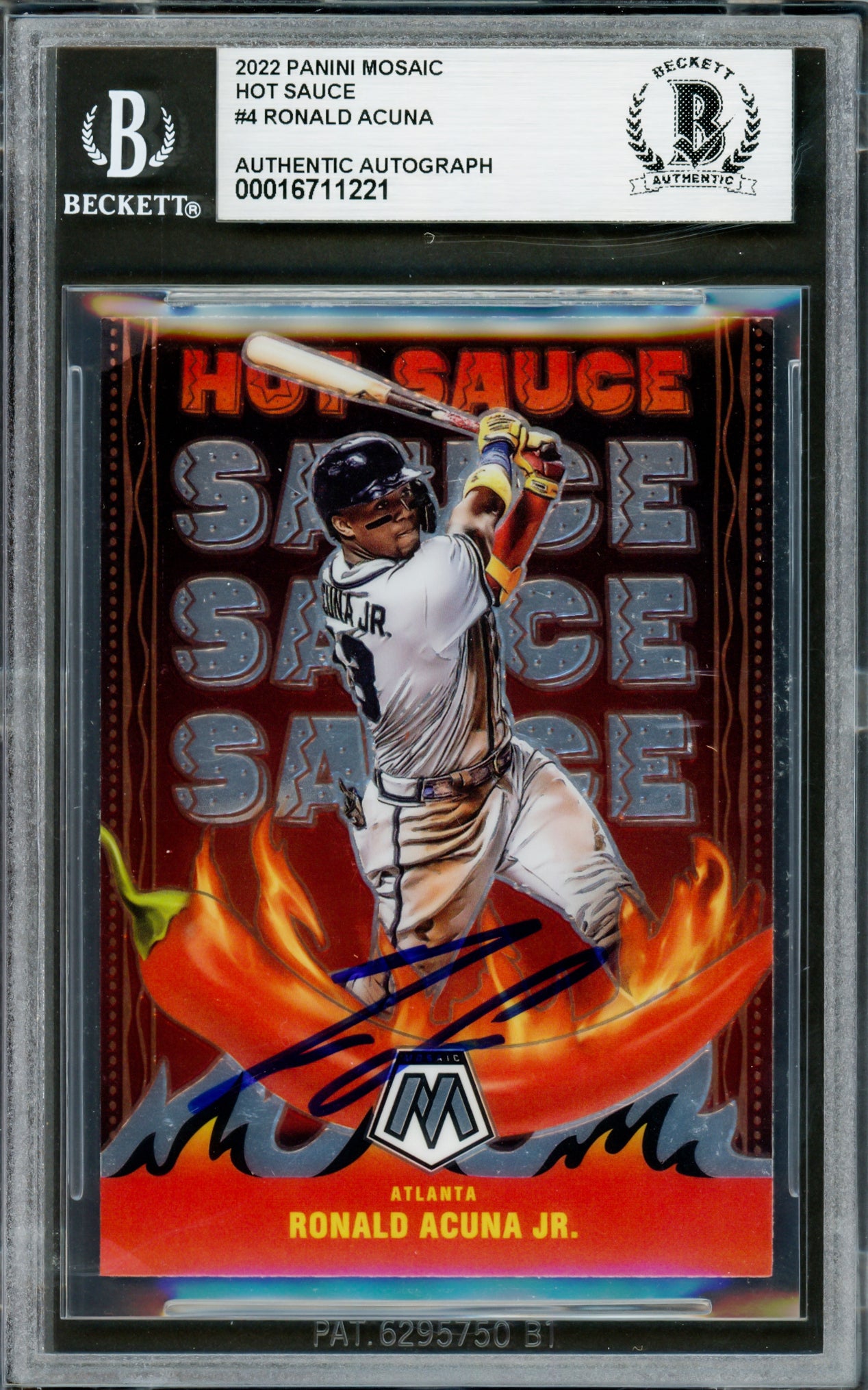 Ronald Acuna Jr. Autographed 2022 Panini Mosaic Hot Sauce Card #HS4 Atlanta Braves Beckett BAS #16711221