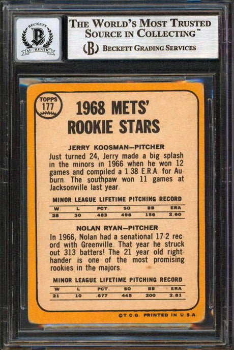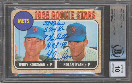 Mets Nolan Ryan "Stat" Signed 1968 Topps #177 Rookie Card Auto Grade 10 BAS Slab