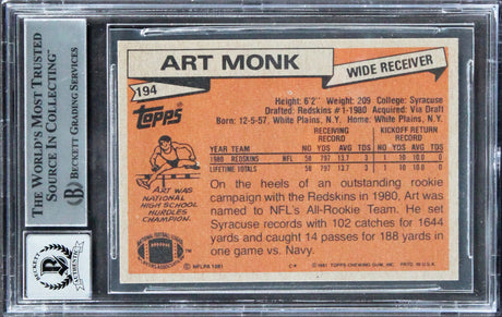 Very low stock (1 unit)$159Unit price /UnavailableArt Monk "HOF 08" Signed 1981 Topps #194 Rookie Card Auto 10! BAS Slabbed