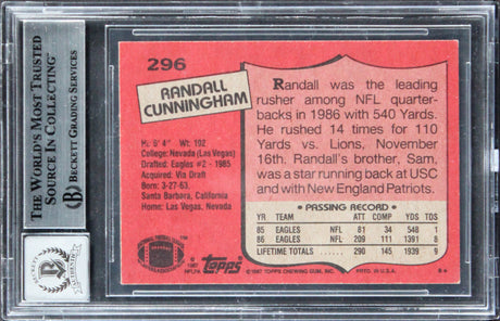 Eagles Randall Cunningham Signed 1987 Topps #296 Rookie Card Auto 10! BAS Slab