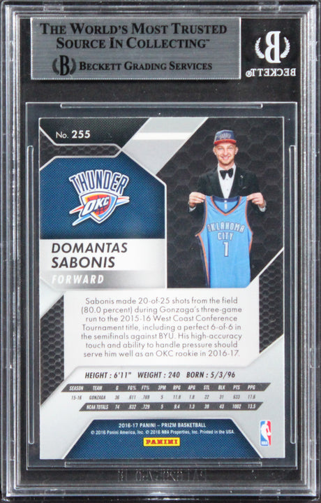 Thunder Domantas Sabonis Signed 2016 Panini Prizm #255 Rookie Card BAS Slabbed