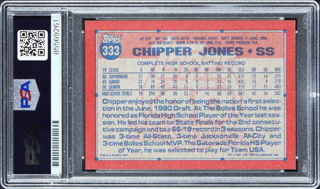 Very low stock (1 unit)$249Unit price /UnavailableBraves Chipper Jones Signed 1991 Topps #333 Rookie Card Auto 10! PSA/DNA Slabbed