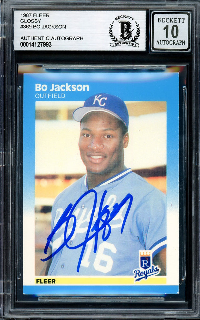 Bo Jackson Signed 1987 Fleer #369 Kansas City Royals Rookie Card BAS Auto 10