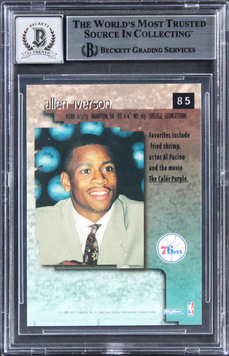 76ers Allen Iverson Signed 1996 Skybox Premium #216 Rookie Card BAS Slabbed