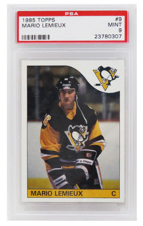 Very low stock (1 unit)$3,299Unit price /UnavailableMario Lemieux (Pittsburgh Penguins) 1985 Topps Hockey RC Rookie Card #9 - (PSA 9 MINT) (I)
