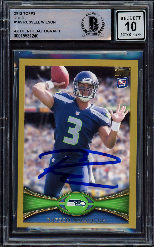 Russell Wilson Autographed 2012 Topps Gold Rookie Card #165 Seattle Seahawks Auto Grade Gem Mint 10 Beckett BAS #15531240