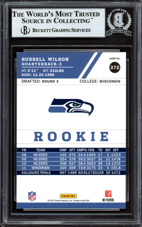 Russell Wilson Autographed 2012 Score Glossy Rookie Card #372 Seattle Seahawks Beckett BAS #13447085