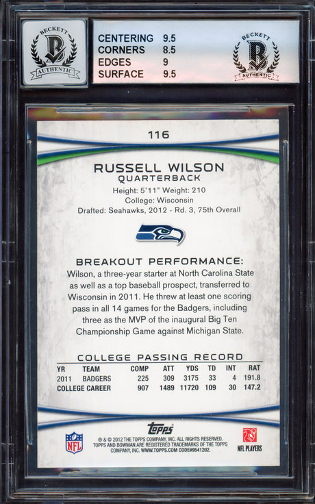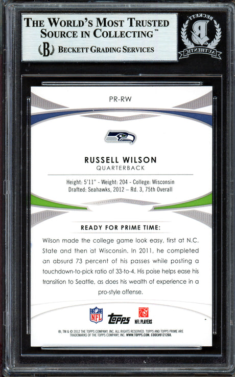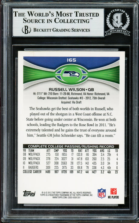 Russell Wilson Autographed 2012 Topps Rookie Card #165 Seattle Seahawks Beckett BAS #13447102