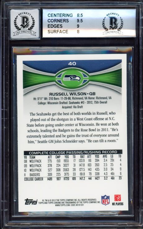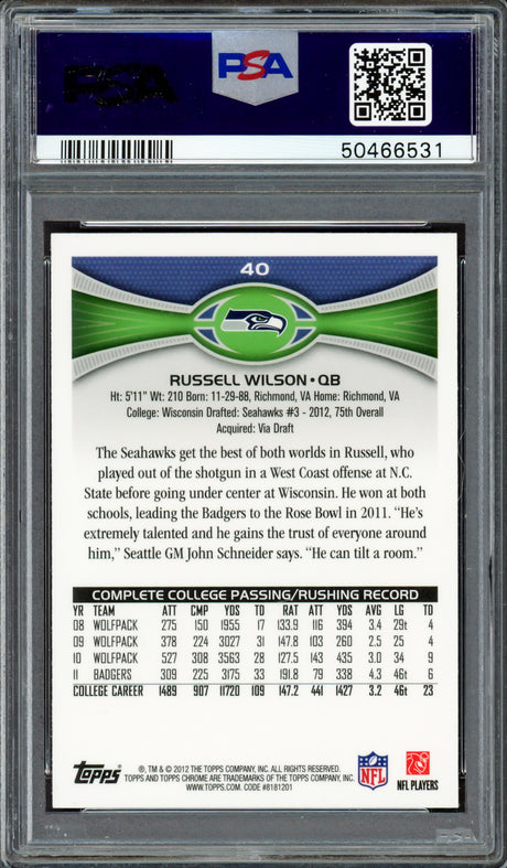 Russell Wilson Autographed 2012 Topps Chrome Rookie Card #40 Seattle Seahawks PSA/DNA #83812171