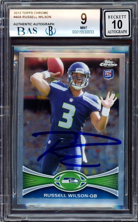 Very low stock (1 unit)$159Unit price /UnavailableRussell Wilson Autographed 2012 Topps Chrome Rookie Card #40 Seattle Seahawks Beckett BAS #13447110