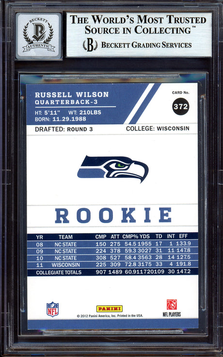 Russell Wilson Autographed 2012 SP Authentic Rookie Card #87 Seattle Seahawks Beckett BAS #13447093