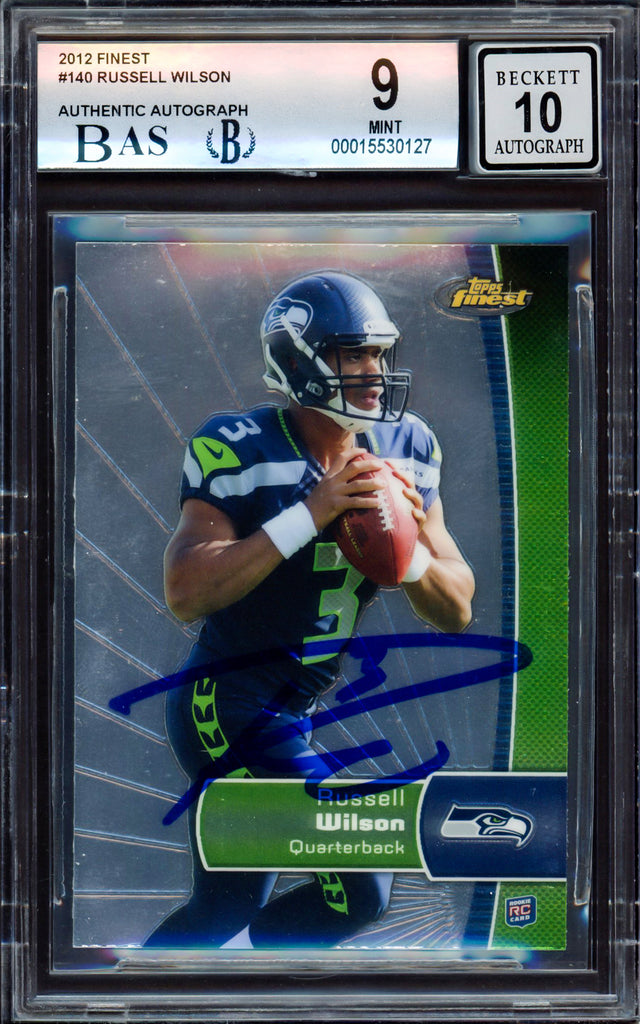 Russell Wilson Autographed 2012 Topps Finest Rookie Card #140 Seattle Seahawks BGS 9 Auto Grade Gem Mint 10 Beckett BAS #15530127