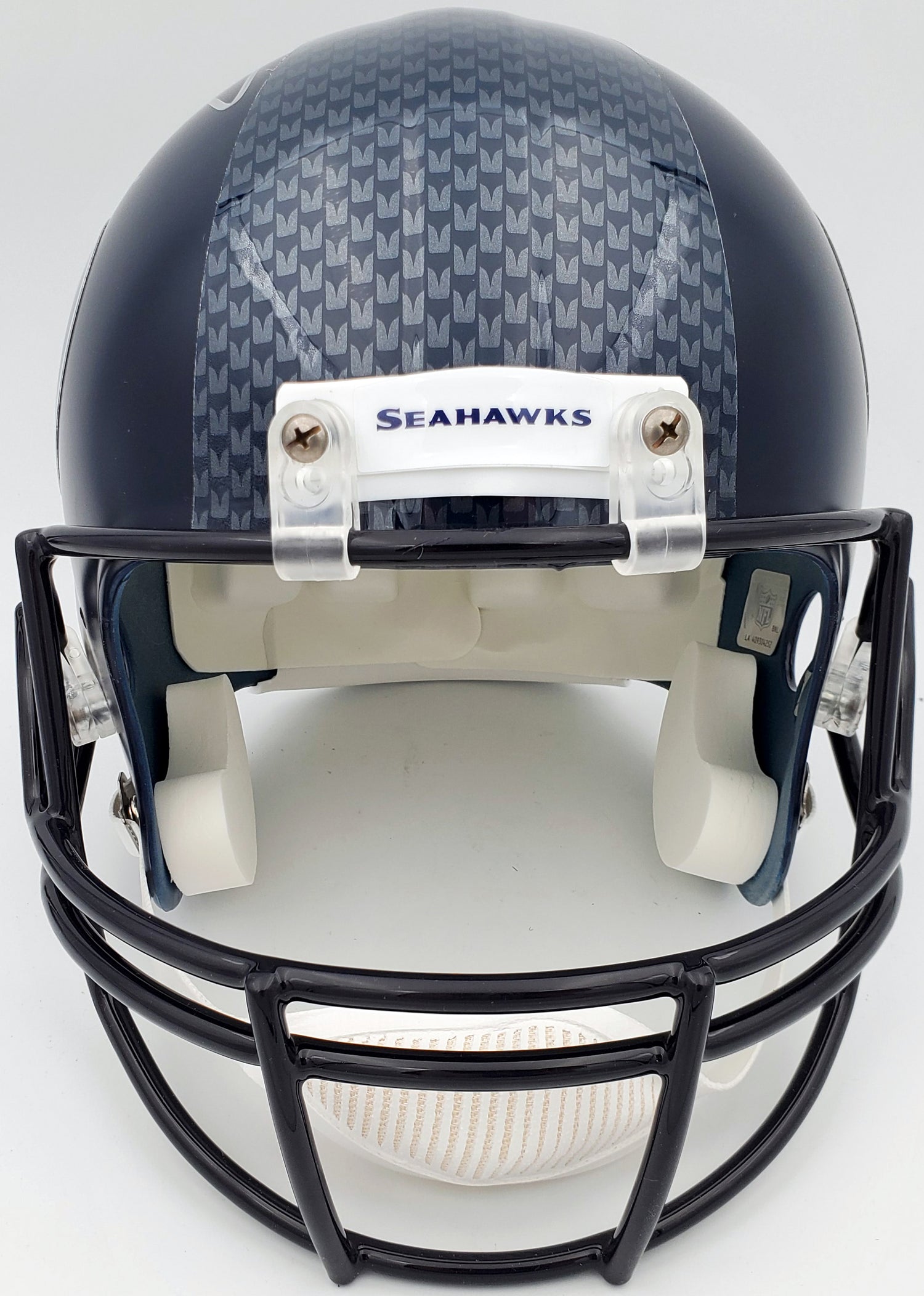 Russell Wilson Autographed Seattle Seahawks Full Size Replica Helmet In Silver RW Holo Stock #74632