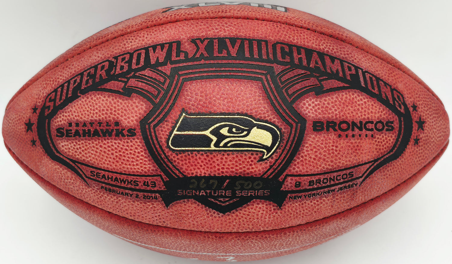 - Official NFL leather football featuring the Seattle Seahawks Super Bowl XLVIII Champions logo