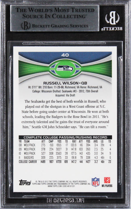 Seahawks Russell Wilson Signed 2012 Topps Chrome #40A Rookie Card BAS Slabbed