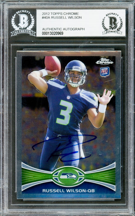 Russell Wilson Autographed 2012 Topps Chrome Rookie Card #40A Seattle Seahawks Beckett BAS #13020969