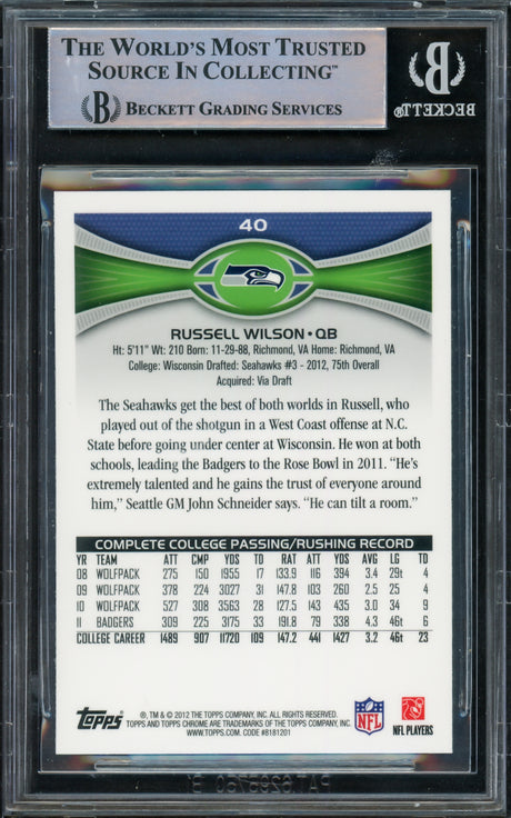 Seahawks Russell Wilson 2012 Topps Chrome #40 Rookie Card Gem Mint 10! PSA Slab