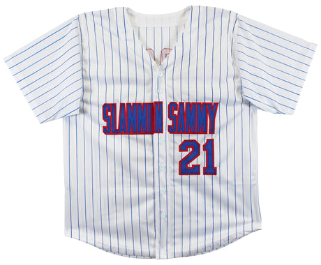 Sammy Sosa Signed Chicago Cubs White Pinstripe Majestic Replica Baseball Jersey