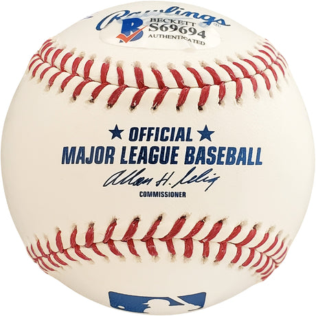 Sammy Sosa Autographed Official MLB Baseball Chicago Cubs "3x 60 HR" Beckett BAS Stock #177579