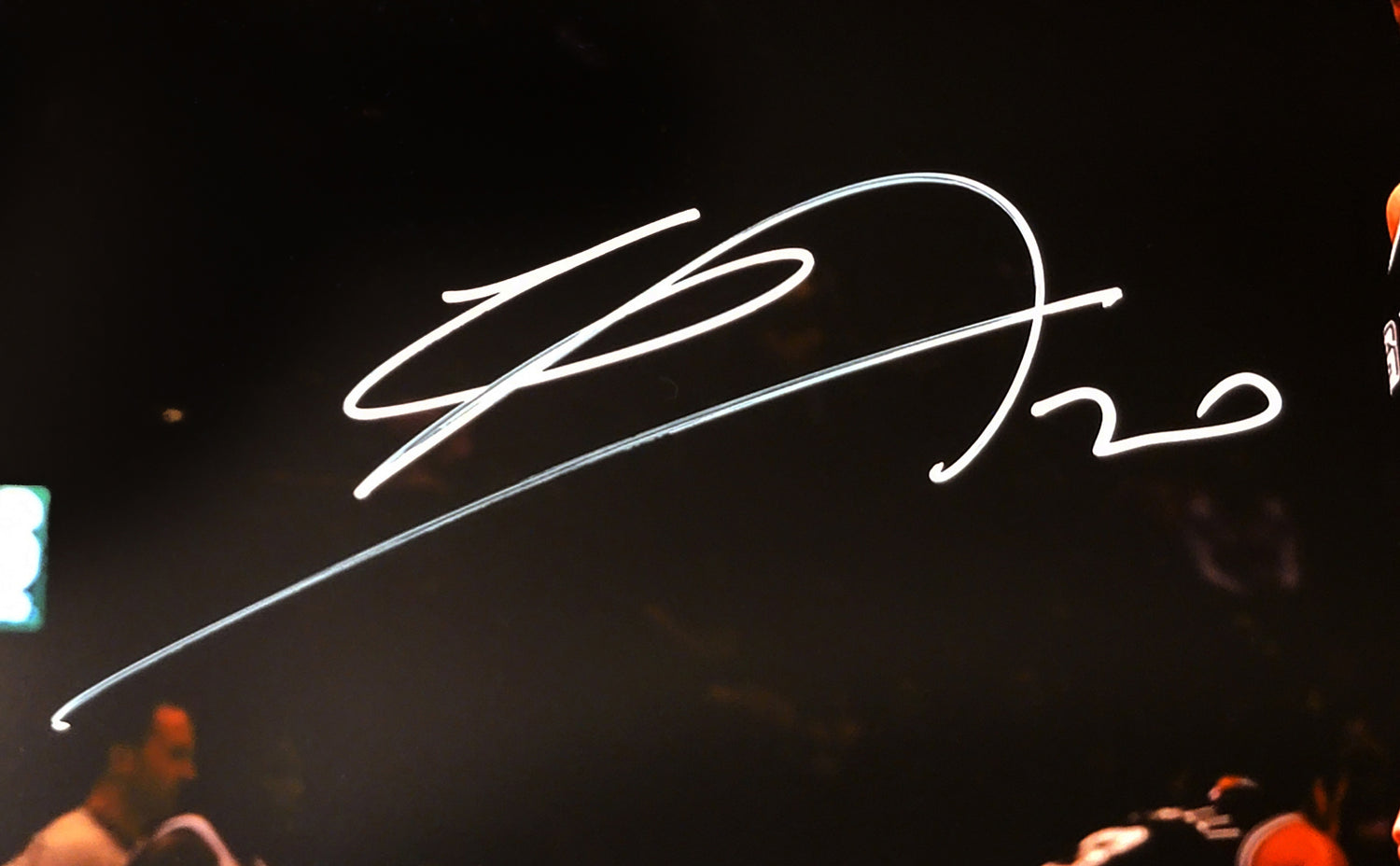 This autographed photo is a must-have for basketball enthusiasts, collectors, and Spurs fans who appreciate the legacy of Manu Ginobili and his impact on the game.