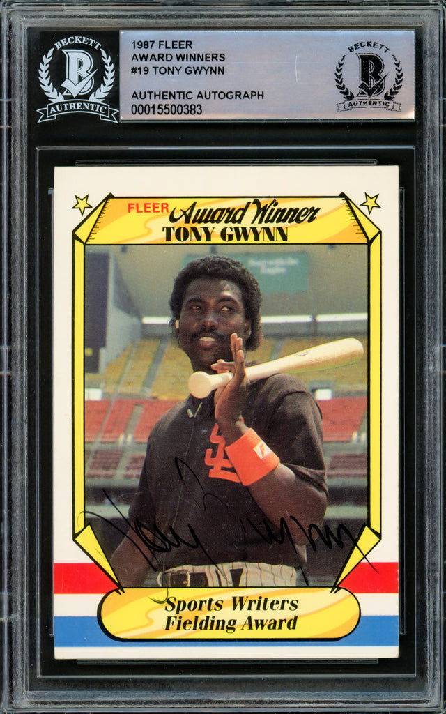 Tony Gwynn Autographed 1987 Fleer Award Winner Card #19 San Diego Padres Beckett BAS #15500383