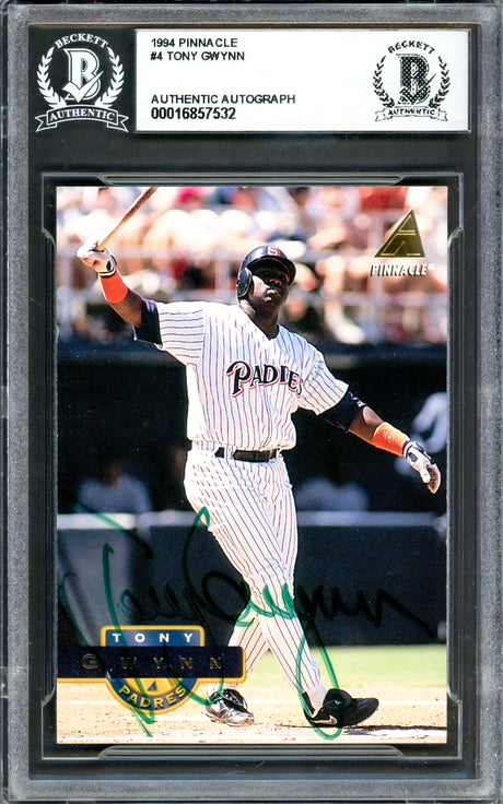 Very low stock (1 unit)$169Unit price /UnavailableTony Gwynn Autographed 1994 Pinnacle Card #4 San Diego Padres Beckett BAS #16857532