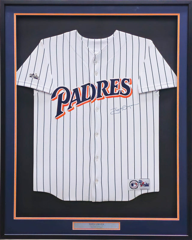 Own a piece of baseball history with this framed White Pinstripes Majestic San Diego Padres Jersey, hand-signed by the legendary Tony Gwynn. Known as "Mr. Padre," Gwynn was a 15-time All-Star, 8-time National League batting champion, and a Hall of Famer, making this autographed jersey a must-have for collectors and fans alike.