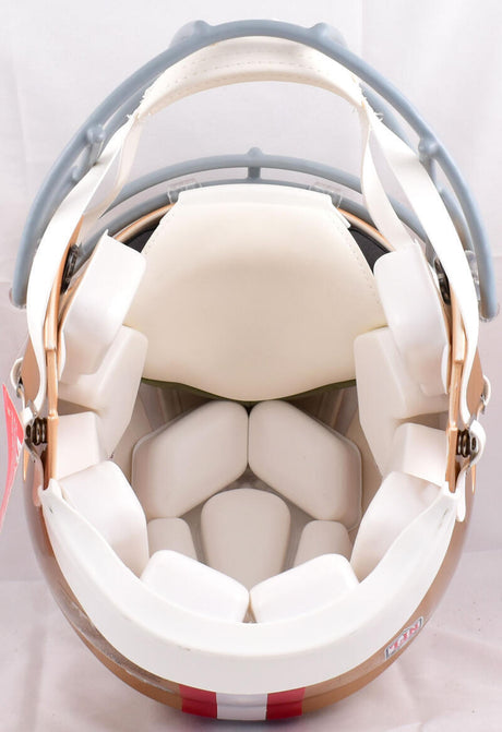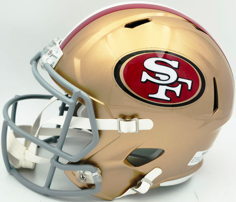 Whether you bleed red and gold or you're adding a marquee piece to your sports memorabilia collection, we have 49ers items across every product category. Browse our full selection of autographed 49ers helmets featuring full-size and mini replica helmets signed by franchise icons. Explore our extensive inventory of San Francisco 49ers trading cards including PSA-graded rookies and vintage inserts. Add framed and unframed signed 49ers photos capturing iconic plays like "The Catch" and championship celebrations. Suit up your collection with autographed 49ers jerseys from both current stars and all-time greats. For the ultimate game-day display piece, check out our signed 49ers footballs. We also carry 49ers Funko Pops and signed 49ers hats for collectors who want something unique.